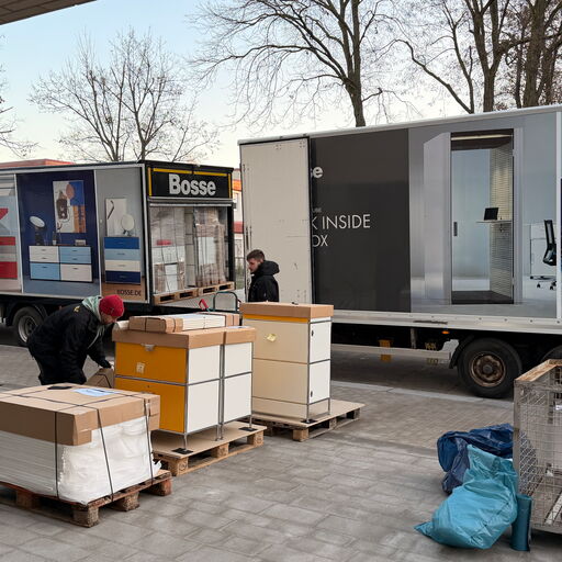 Mit der Lieferung und dem Aufbau der ersten Möbel zieht Leben ins Haus ein: Schränke und Schreibtische nehmen ihren Platz ein und machen den baldigen Umzug greifbar.