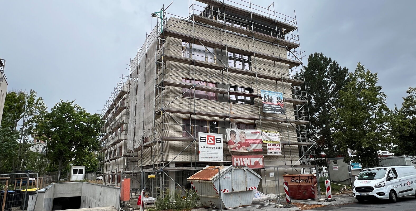 Die Fassade des HAUS SONNENSTRAHL strahlt jetzt in neuem Glanz: die Klinkersteine wurde fertig angebracht.