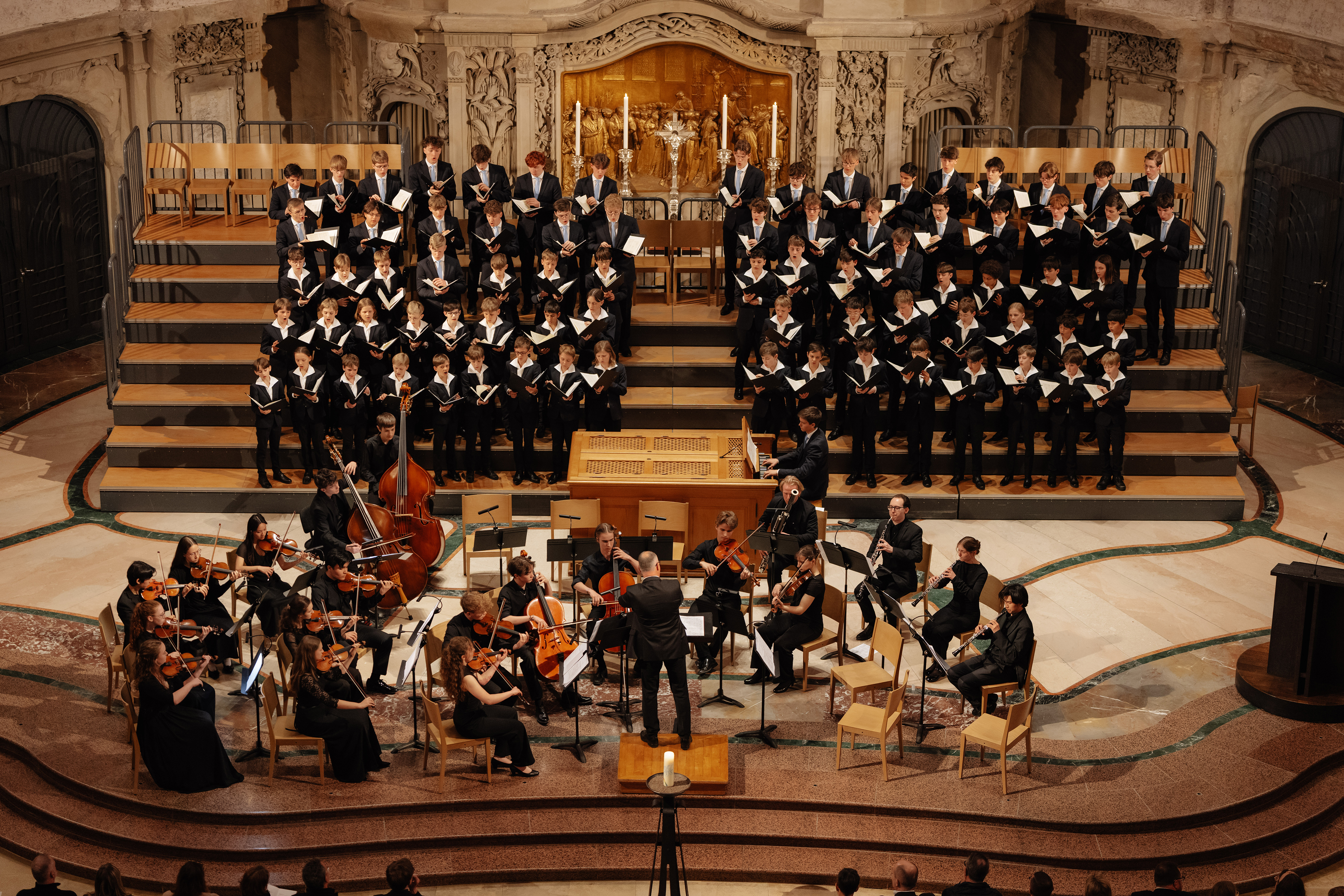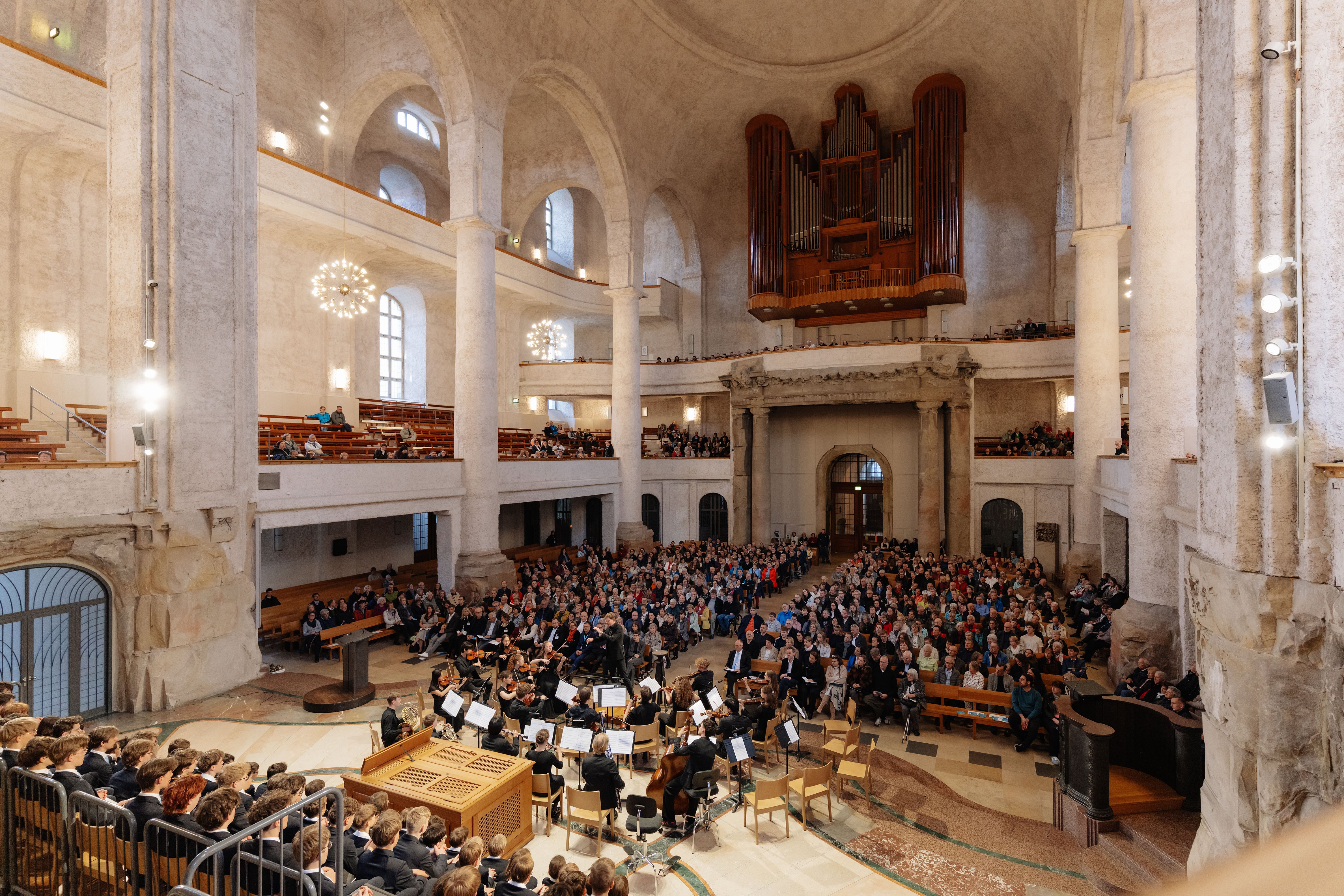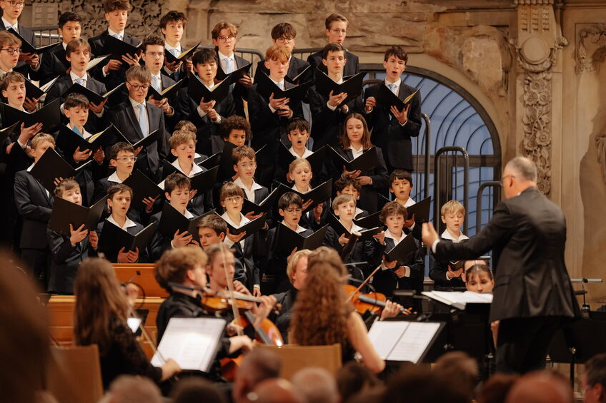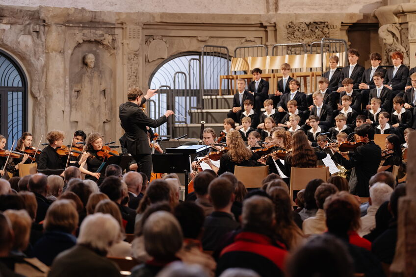 Um 18 Uhr öffneten sich die schweren Holztüren der Kreuzkirche Dresden für fast 900 Gäste. Nach dem Glockenläuten und einem Orgelsolo des Kruzianers Ludwig Haenchen gestaltete die Junge Camerata Dresden den musikalischen Auftakt mit einer Sinfonie von Joseph Haydn.