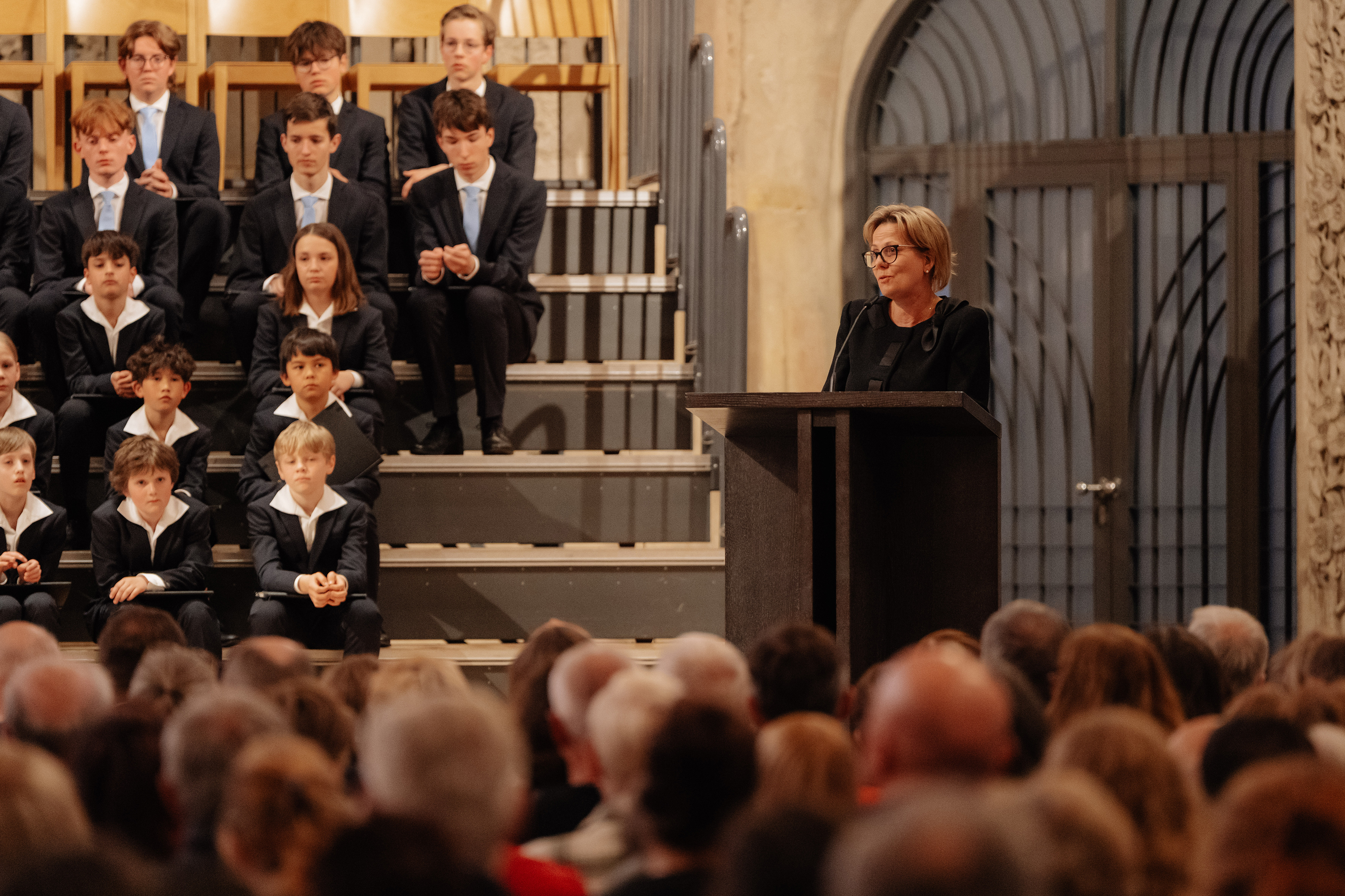 Im Laufe des weiteren Abends zeigte der Dresdner Kreuzchor seine musikalische Bandbreite mit Werken von Józef Swider, Heinrich Schütz bis hin zu Jake Runestad. Auch die Schirmherrin des Benefizkonzertes, Staatsministerin Barbara Klepsch, fand anerkennende Worte für die Musizierenden und unsere Arbeit für krebskranke Kinder.
