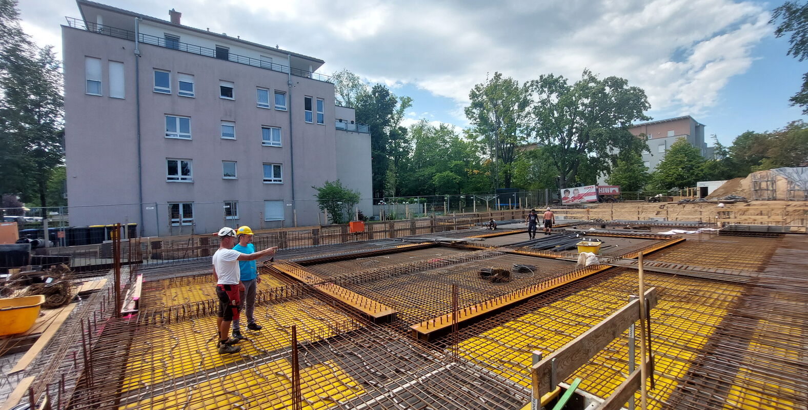 Das Stahlgeflecht für die Decke der Tiefgarage ist fertiggestellt und wird in den nächsten Tagen mit Beton aufgegossen. Danach folgt der Aufbau des Erdgeschosses. Wir sind gespannt auf die nächsten Fortschritte!!